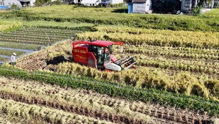 机械赋能丰收!我县2.5万亩单季稻抢收 “马力全开”