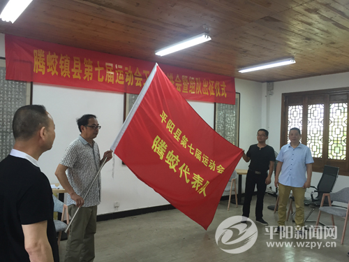 平阳县第七届全运会即将开幕。5月18日上午,腾蛟镇在腾带村文化礼堂举行七运会出征仪式。