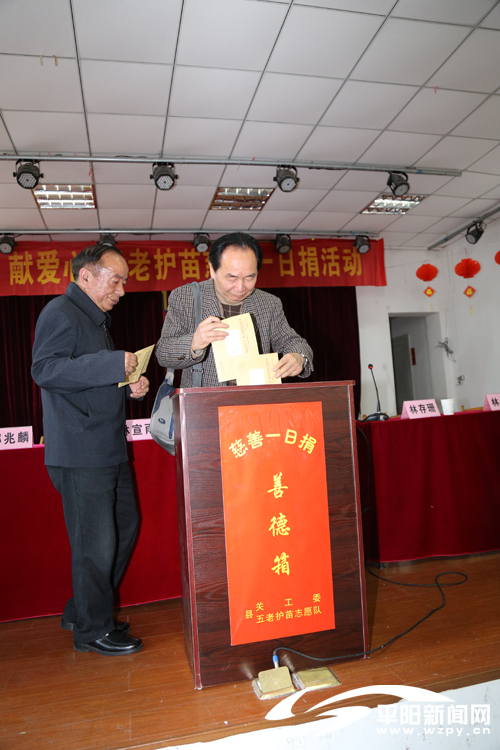 3月27日下午,平阳县关工委和县“五老护苗”志愿队在县老年大学开展“学雷锋献爱心‘五老护苗’慈善一日捐”活动。活动当天到场的不仅有县“五老护苗”志愿队队员,还有县“五老护苗”志愿队昆阳个协支队、烟草公司支队的队员、老年大学学员、社会爱心人士等,共168人,募集善款60200元,作为助学济困的护苗专项基金。(平阳县关工委办)