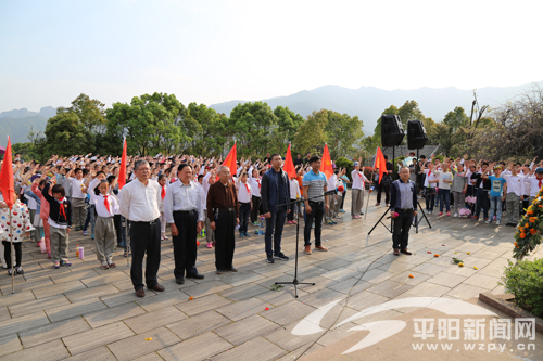 春暖花开,晴空万里。4月2日,在清明节来临之际,平阳县关工委联合县教育局、县党史办和山门镇中心小学,一行600多人,怀着无比崇敬的心情,在山门中国工农红军挺进师纪念碑前庄严集会,举行“缅怀革命先烈暨‘三爱’主题教育”启动仪式,深切缅怀革命烈士的丰功伟绩,祭奠烈士的英灵,寄托对革命先烈的无限哀思,表达我们继承革命遗志,发扬革命传统,刻苦学习,努力建设和谐平阳的坚定信心。启动仪式由县关工委专职副主任陈新新主持。