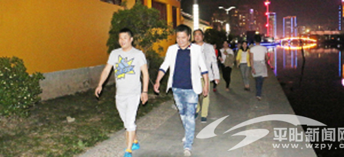 昨晚,“远山掩落日,华灯映阶除”,记者来到位于凤湖公园的步行道,一条绿树掩映的道路,满目苍翠;一列大步跨走的人群,浩浩荡荡。在这,难以计数的人群中,有中老年,有青少年,有男有女,也有着共同的运动之心。他们身着短袖,腰系外套,脚踩运动鞋,酣畅淋漓地快走着,而那舞动的外套则于夜色中绽放出一朵又一朵活力的花儿。在这,他们一路不曾停歇,一路赏景听风。一路上,他们在看风景,而他们同时也是景,吸引着行人的目光,成了步行道上一道独特的风景线,让旁人跃跃欲试跟随其步伐。步行道上,不时会有行人加入其中,从散步转为快走,随后又渐渐落后于他们。陈女士说,快走看似简单,其实不然,自己跟了一会,就感觉体力不支了,但快走后感觉很舒服,接下来会继续进行。