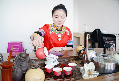 车子沿着蜿蜒的道路,盘旋而上,偶有山涧幽泉潺潺流淌,大片的茶树梯田渐入眼帘,玉兰花正开着,点缀其间。山风掠过,花香、茶香扑鼻而来,真是洗肺又润眼。信步在朝阳山头的新联村,暖阳下,采茶女挎着竹篓,身手敏捷地穿梭于茶园。朝阳山盛产早香茶,亦称平阳黄汤茶。平阳黄汤茶,曾以“干茶显黄,汤色杏黄、叶底嫩黄”的“三黄”特征傲立茶业界。在清朝,它被奉为贡品,是浙产茶叶的重要代表。20世纪30年代,每年都有千余担黄汤从平阳等地运销至上海、北京等大城市。解放后,平阳黄汤因多种原因停产,并由于缺乏文字记载,其加工工艺逐渐失传。此后的数十年,平阳黄汤几乎销声匿迹。直到2011年,钟维标开始用“九闷九烘”古法反复研制,才发现茶的味道和描述中平阳黄汤的韵味越来越接近。