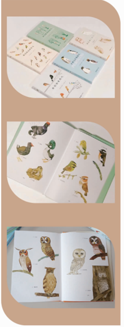 《世界上的鸟儿》套装包含以下五本书:《我们花园里的鸟》《我们唱歌的鸟》《我们林地里的鸟》《我们迷人的鸟》和《企鹅和其他海鸟》。与书名一样,每本书的内容都呆萌有趣,每翻开一页,你都会看到一只萌萌的鸟儿在书页间跟你打招呼。可能这是你第一次意识到,鸟类世界如此浩瀚丰富,虽然都同为鸟儿,但每一种从长相、性情和鸣叫声都迥然相异,每一只都是大自然的精彩杰作。