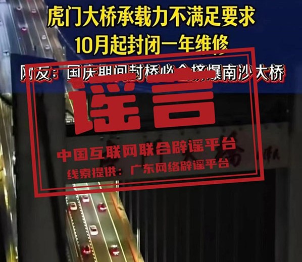 谣言:广东虎门大桥10月起封闭维修?