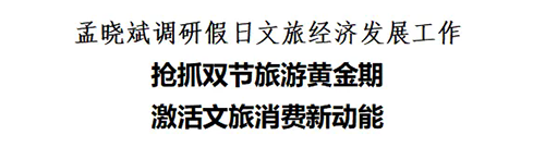 孟晓斌指出,中秋国庆双节是脉冲式推进“一红三南五里”文旅新打法的关键节点,也是展示平阳形象的重要窗口。全县上下要充分认识文旅产业在假日经济高质量发展中的重要作用,抢抓文旅消费需求集中释放的节点契机,以县域各大热门景区、街区、商圈为依托,撬动假日文旅经济蓬勃发展,切实把文旅资源优势转化为经济发展优势。