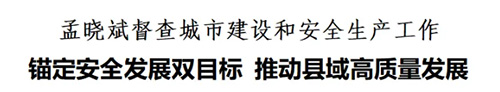 本网讯 (记者 曹文倩 编辑 缪军) 10月2日,县委书记孟晓斌前往万全镇、昆阳镇、鳌江镇等地,督查城市建设和安全生产工作。他强调,要深入学习贯彻习近平总书记关于更好统筹发展和安全的重要论述和中央城市工作会议精神,坚持以人民为中心的发展思想推进城市建设,以“时时放心不下”的责任感抓牢安全生产,为平阳提升发展筑牢坚实根基、提供坚实保障。
