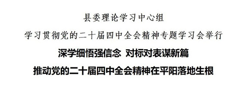 本网讯(记者 张炜 编辑 郑振国)11月17日,县委理论学习中心组学习贯彻党的二十届四中全会精神专题学习会举行。受县委书记孟晓斌委托,县委副书记、县长陈桂雷主持会议并讲话,强调要一体贯彻落实党的二十届四中全会精神和习近平总书记考察浙江重要讲话精神,全面落实“4+1”重要要求、省委“132”总体工作部署和省委十五届八次全会部署,市委“全力冲刺‘双万’城市,提速打造‘全省第三极’”统一部署,高水平谋划“十五五”发展,推动党中央和省市决策部署在平阳落地见效,努力为全省全市发展大局多作贡献。