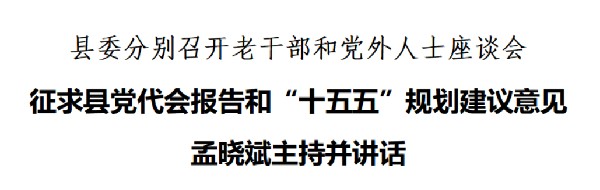 本网讯(记者 张炜 编辑 周启来)1月17日,县委书记孟晓斌分别主持召开老干部和党外人士代表座谈会,广泛征求《县第十四届党代会第五次会议报告(征求意见稿)》和《中共平阳县委关于制定平阳县国民经济和社会发展第十五个五年规划的建议(征求意见稿)》的建议意见。