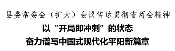 会议指出,这次省两会是在“十五五”规划开局起步的关键之年召开的一次十分重要的会议,为我们奋进新征程、谋划推进“十五五”时期各项工作指明了前进方向。全县上下要切实把思想和行动统一到中央和省委、市委重大决策部署上来,对照习近平总书记“4+1”重要要求和省委“132”总体工作部署,紧扣市委“1361”思路举措,系统谋好“十五五”的发展路径,高水平建成地区生产总值和规上工业总产值“双千亿”经济强县,在打造共富先行平阳样板上取得决定性进展,奋力谱写中国式现代化平阳新篇章。