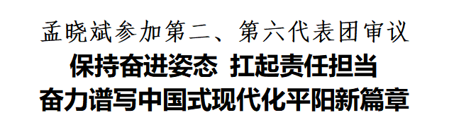 本网讯(记者 徐远虑/文 陈云散/摄 编辑 郑振国)1月23日,县委书记孟晓斌来到第二代表团和第六代表团,与鳌江镇和腾蛟镇的党代表一起审议县委、县纪委工作报告和《中共平阳县委关于制定平阳县国民经济和社会发展第十五个五年规划的建议(讨论稿)》。他强调,要继续保持奋进姿态,坚定扛起“提升发展”责任,为平阳奋进“十五五”新征程,高水平建成“双千亿”经济强县,打造共富先行平阳样板取得决定性进展,生动展现基本实现社会主义现代化的县域图景作出新的更大贡献。