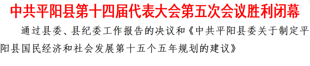 本网讯(记者 徐远虑/文 林鑫/摄 编辑 郑振国)1月23日下午,中国共产党平阳县第十四届代表大会第五次会议在圆满完成各项议程后,在县城东文化中心胜利闭幕。