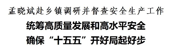 调研督查期间,孟晓斌强调,安全是发展的前提,发展是安全的保障。当前正值“十五五”开局起步的关键时期,各乡镇要深入贯彻落实县党代会年会和县“两会”精神,紧紧围绕“十五五”发展目标,立足本地资源禀赋和产业基础,拿出“开局即决战、起步即冲刺”的劲头,推进一批重点项目,落实一批民生实事,守牢一方安全责任,以项目建设的“加速度”为经济注入新动能,以安全稳定“压舱石”护航提升发展,以实干实绩奋力夺取“一季稳、开门红”。各乡镇、各部门要时刻绷紧安全生产这根弦,聚焦重点行业领域深入开展风险隐患排查整治,建立问题台账、限期整改销号、实行闭环管理;健全完善应急预案体系,提升应急响应和协同作战能力;强化常态化监管和警示教育,坚决防范遏制各类事故发生,以高水平安全护航高质量发展。