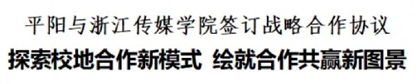 陈兵说,新一轮合作,浙江传媒学院将大力推进“十个一”文化赋能系列项目,积极引入人工智能技术赋能文艺创作,立体化助推平阳文旅产业高质量发展,为平阳文化传播注入数智活力与创新动能,并整合学校社会合作、科研创作、团学等部门和设计、动画、新闻、文管等学院的专业力量,组建师生团队,深入平阳创作一批具有地方特色、传播时代声音的精品力作。希望双方精诚合作、锐意创新,共同打造校地协同、产教融合、共赢发展的新样板,为平阳高质量发展和浙传高水平建设注入新动力。
