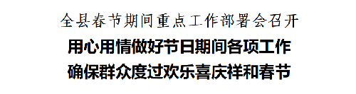本网讯 (记者 张炜/文 陈云散/摄 编辑 金毅刚) 2月11日,全县春节期间重点工作部署会召开,对春节期间各项工作进行全面安排部署。县委书记孟晓斌在会上强调,要切实提高思想认识,绷紧思想之弦,树牢“群众过节、干部过关”责任意识,以扎实的举措、严实的作风做好春节期间各项工作,确保全县群众度过一个欢乐祥和平安的春节。