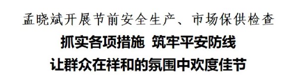 检查中,孟晓斌强调,各乡镇、有关部门要提高政治站位,压实工作责任,聚焦重点领域和关键环节,开展全方位、拉网式隐患排查整治,坚决防范重特大事故发生。要扎实做好市场保供,丰富商品供给、稳定价格、规范秩序,保障群众基本生活需求。要健全应急处置机制,严格执行24小时值班和领导带班制度,广泛开展安全宣传教育,营造人人关注安全的良好氛围,全力守护群众生命财产安全,让全县群众度过平安祥和的春节。