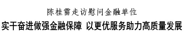 陈桂雷先后前往平阳金融监管支局、中国人寿保险股份有限公司平阳县支公司、中国人民财产保险股份有限公司平阳支公司、中信银行平阳支行、宁波银行平阳支行、浙商银行平阳支行、华夏银行平阳支行等金融单位,与各单位负责人和一线员工亲切交流,认真倾听意见建议,详细了解机构业务开展、服务实体经济、风险防控、队伍建设等工作情况,对各金融单位长期以来在支持重点项目建设、助力企业发展、保障民生福祉等方面作出的积极贡献表示充分肯定和衷心感谢。