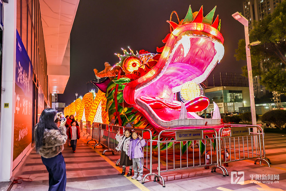 夜幕降临,华灯初上,鳌江大龙在万达广场亮起璀璨灯光。