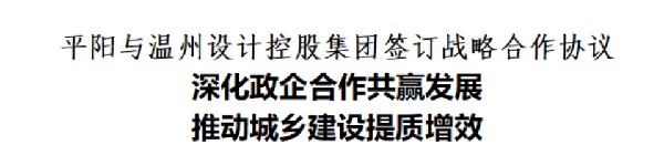 据悉,温州设计控股集团作为深耕温州及周边市场的综合性勘察设计单位,集聚现代化人才与技术优势,是城乡建设领域最贴近温州需求的“智囊团”“主力军”“先锋队”,也是浙南闽北赣东区域实力雄厚、声誉卓著的行业标杆。此次战略合作的达成,将为平阳城乡建设注入一站式、全过程的技术服务支撑,有力推动城乡规划、项目勘察、工程设计等各项工作迈上新台阶,为县域高质量发展提供坚实支撑。
