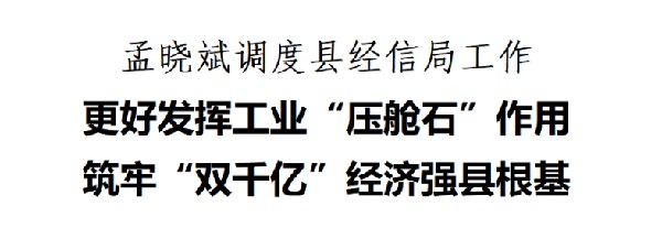 在随后召开的调度会上,孟晓斌认真听取全县经信工作情况汇报,对过去一段时期全县经信系统取得的工作成效给予肯定。他指出,工业是县域经济的“压舱石”,经信工作是推动工业高质量发展的核心抓手。当前正处于“十五五”开局起步的关键节点,全县上下必须坚定信心、乘势而上,始终把“工业强县”战略摆在突出位置,以“双千亿”经济强县建设为总牵引,在关键时期拿出关键举措,奋力实现工业经济“开门好”。