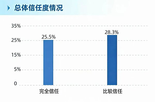 受访群体对“重庆辟谣”整体信任度53.8%,其中“完全信任”25.5%、“比较信任”28.3%,信任核心源于“重庆辟谣”由重庆市委网信办主办的官方属性。