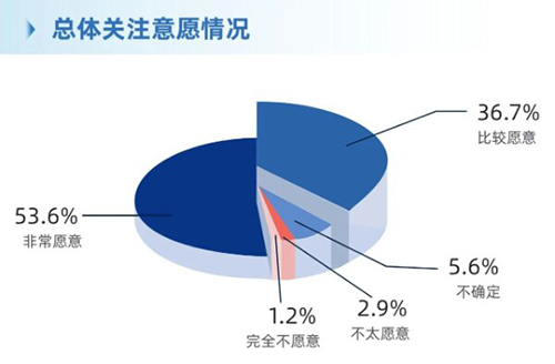年龄差异:19-30岁关注意愿达100%,31-45岁为98.9%,46-60岁为86.4%,61岁及以上为40.9%。
