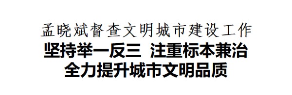 督查中,孟晓斌强调,文明城市建设没有旁观者、没有局外人,全县上下要牢固树立“一盘棋”思想,坚持问题导向,聚焦薄弱环节补齐短板弱项,巩固提升创建成果,严防问题反弹回潮。要抓好常态长效管理,始终把群众满意作为第一标准,坚持举一反三,注重标本兼治,从源头治理、制度设计、责任落实等层面破题,拿出实招硬招,让群众在文明城市建设中得到实实在在的便利与舒心。要加大宣传引导力度,充分激发广大群众的参与热情和主人翁意识,凝聚全社会共建共享的强大合力,着力营造齐抓共管、人人参与、人人尽责、人人受益的浓厚建设氛围。