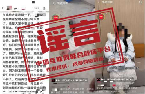 详情:近日,有网民发布“抓蜈蚣致眼睛失明”系列视频,同时关联“失明”“就医”“轻生”“积极面对生活”等话题,引发网民关注。经成都都江堰公安查证,王某(男,32岁),付某某(女,33岁)为引流吸粉、博取关注、获取流量收益,在家中、医院等多场景自导自演、虚构“抓蜈蚣致眼睛失明”事件,剪辑发布多段虚假网络视频,误导公众认知、扰乱公共秩序。依据《中华人民共和国治安管理处罚法》第二十九条第一项之规定,已对二人予以行政处罚,并依法关停相关网络账号。(来源:“成都网络辟谣”微信公众号)