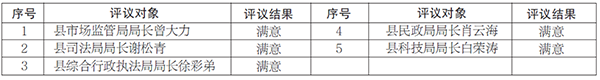 平阳县第十七届人民代表大会常务委员会第十三次会议于2023年11月29日对县科技局、县民政局、县司法局、县市场监管局、县综合行政执法局等五个县政府组成部门主要负责人2023年度履职情况进行了评议。现将评议结果公告如下: